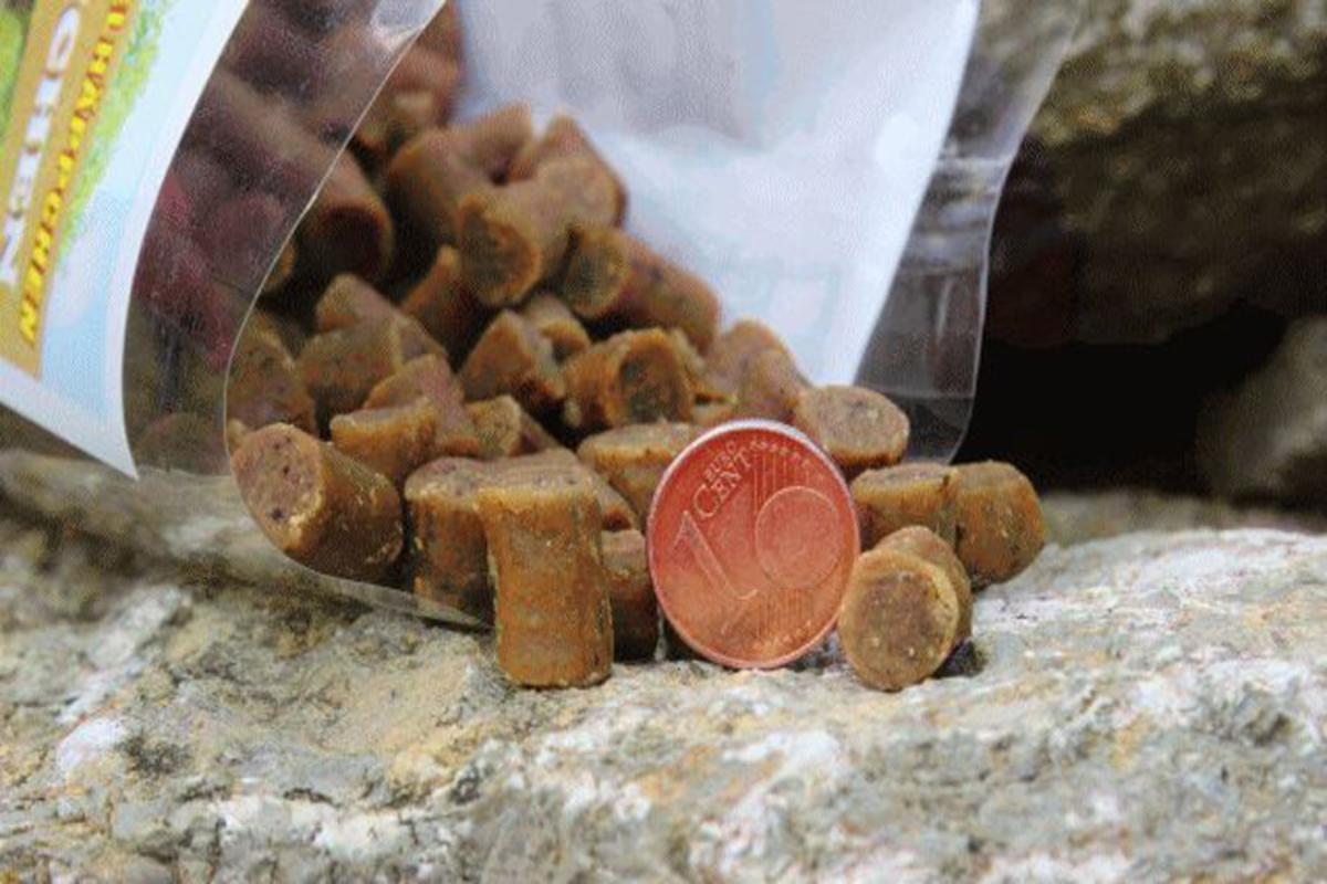 Huhn pur: Wie auch die Mini Kartoffelhäppchen sind die PANYS Miniknochen weich. Die Miniknochen sind sehr klein und eignen sich besonders gut für das Clickertraining. Da PANYS auch bei den Miniknochen wieder an die vielen Hunde mit Nahrungsunverträglichkeiten gedacht hat, wurde bewusst eine getreidefreie Rezeptur verwendet. Natürlich haben wir auch auf künstlichen Aroma- und Farbstoffen verzichtet. Da in den Miniknochen kein Zucker zugesetzt wurde, können Sie die Miniknochen bedenkenlos als Belohnungsleckerchen oder Trainingsleckerchen verwenden. Miniknochen werden gern auch schon an Welpen für die ersten Übungen wie Pfötchen geben usw. verwendet. Einfach die Miniknochen vom Finger abknabbern lassen. Dadurch bekommt der Welpe zusätzlichen Hautkontakt, wodurch die Bindung noch mehr gestärkt werden kann. Auch im hohen Alter lieben Hunde die Miniknochen weil sie so schön weich sind und schnell verschluckt werden können. Hier haben wir mit neun Geschmacksrichtungen für jeden etwas dabei. Ein zufriedenes, glückliches Tier ist doch das, was uns allen am Herzen liegt. Die einzige Frage die sich hier stellt: „Welche Geschmacksrichtung mag mein Liebling am liebsten?“ Bei neun verschiedenen Geschmacksrichtungen fällt die Wahl oft schwer. Dafür haben wir die Miniknochen in 150 g Beutel verpackt. So hat Ihr Liebling die Möglichkeit alle Sorten einmal auszuprobieren. Wenn Sie wissen, welche Sorten bevorzugt werden, empfehlen wir die 500 g im wieder verschließbaren Eimer.