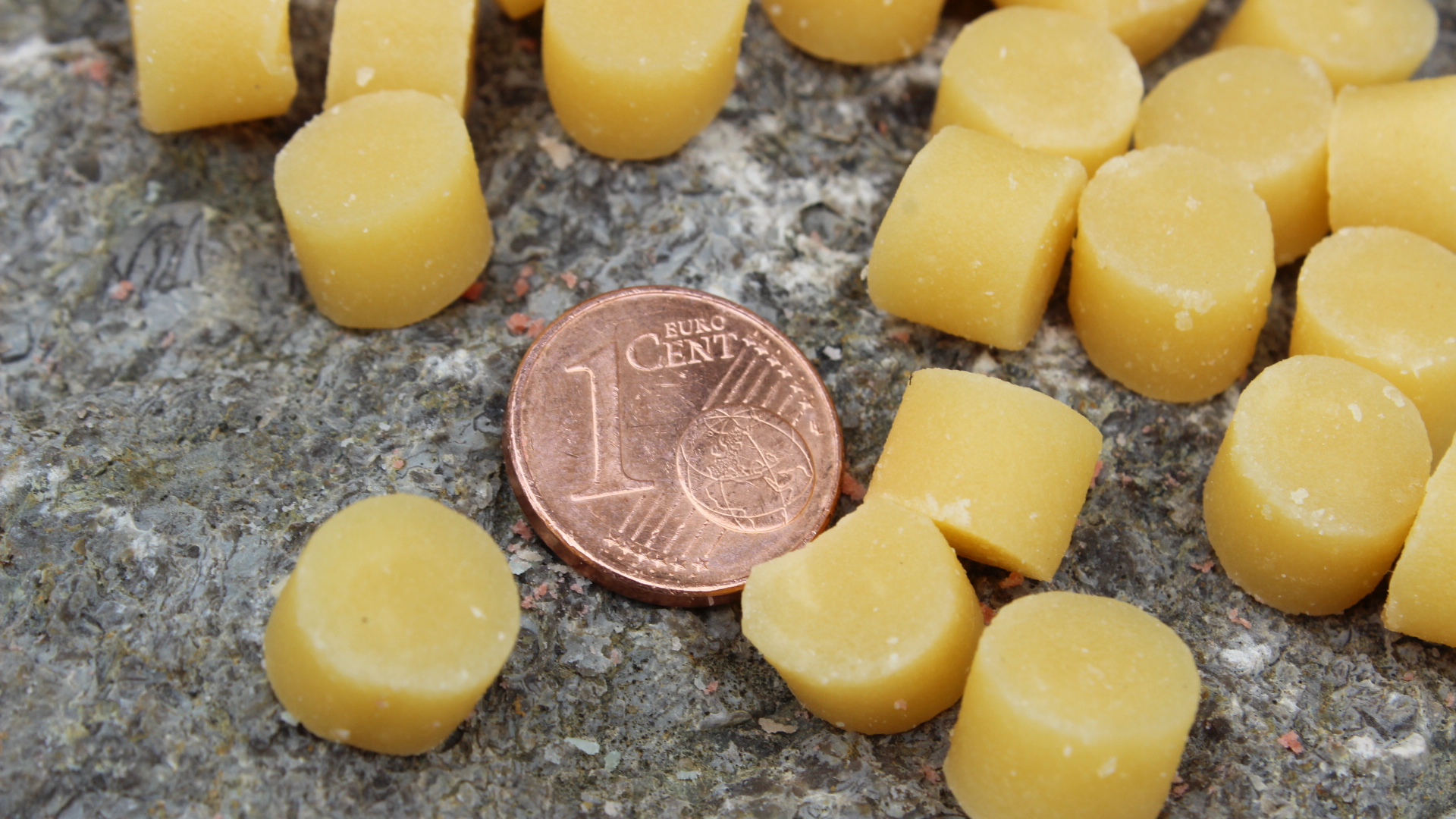 Wir haben die Käsetrainer in 150 g Beutel verpackt. So hat Ihr Liebling die Möglichkeit erst einmal zu probieren. Wenn Sie und Ihr Liebling von den Käsetrainern begeistert sind, empfehlen wir die 500 g im wieder verschließbaren Eimer.